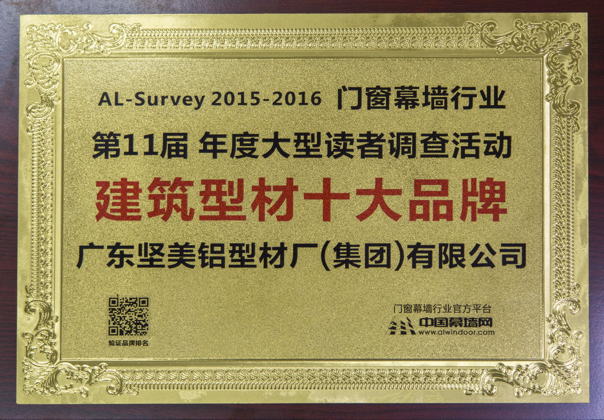 2016.3 第十一屆AL-Survey2015-2016門窗幕墻行業“第十一屆年度大型讀者調查評選活動”—建筑型材十大品牌
