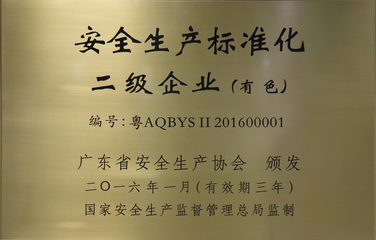 2016年1月 安全生產標準化二級企業(有色) (廣東省安全生產協會)