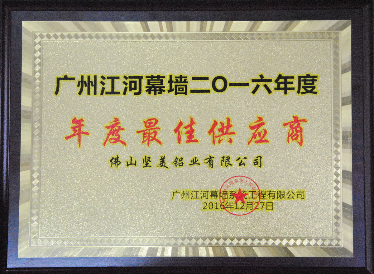 2016年12月 廣州江河幕墻2016年度 度最佳供應商