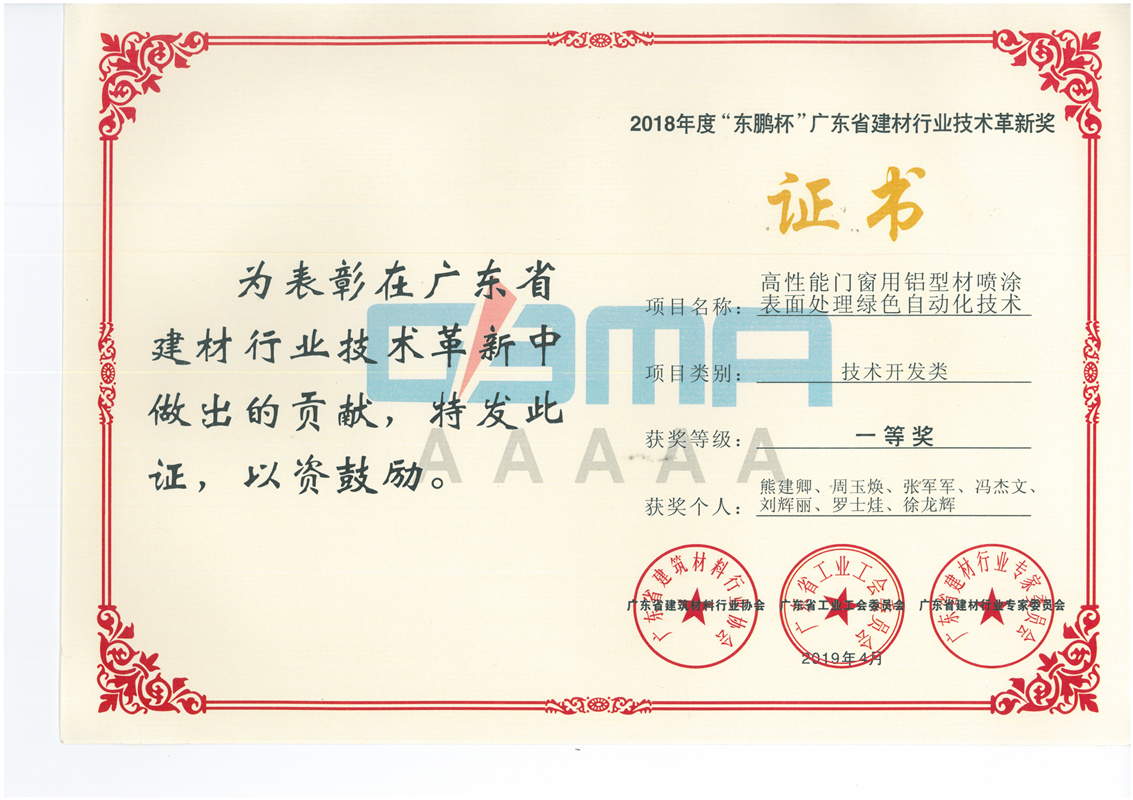 2019年4月東鵬杯廣東省建材行業技術革新獎