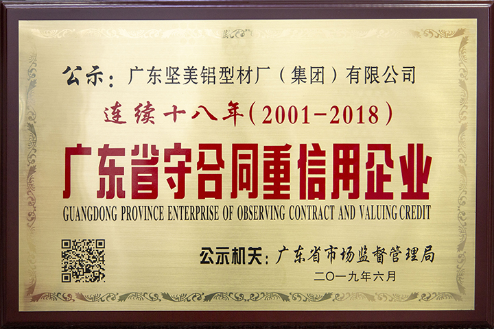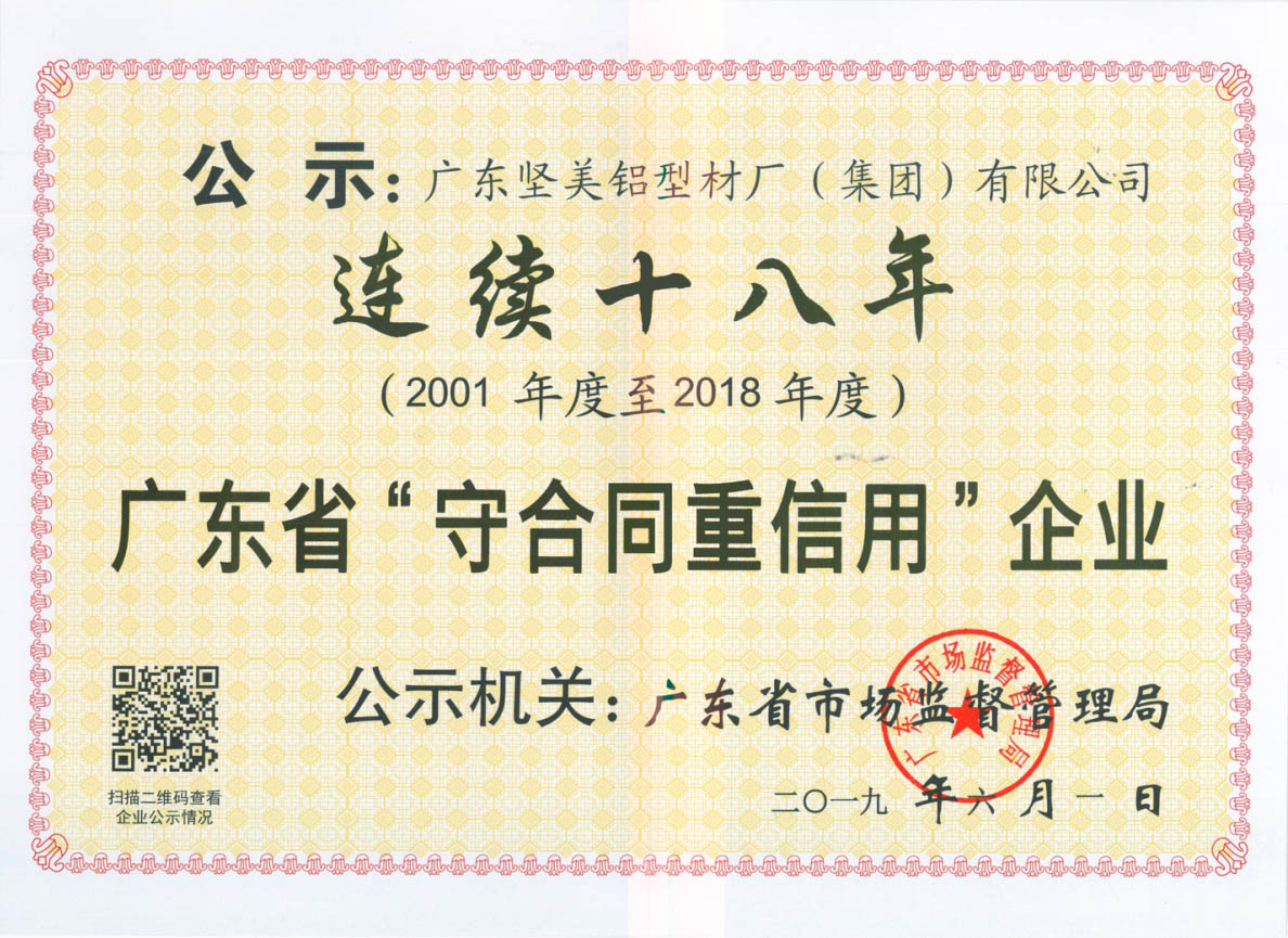 連續十八年(2001-2018)廣東省守合同重信用企業