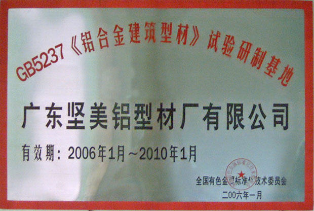 2006年GB5237《鋁合金建筑型材》實驗研制基地