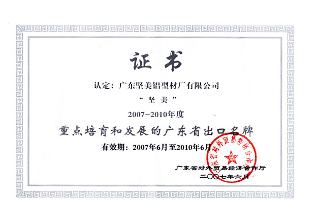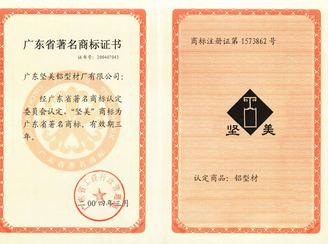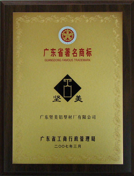 “堅美”牌商標獲評為廣東省著名商標