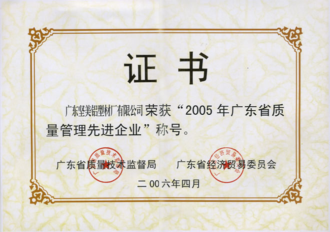 2005年廣東省質量管理先進企業