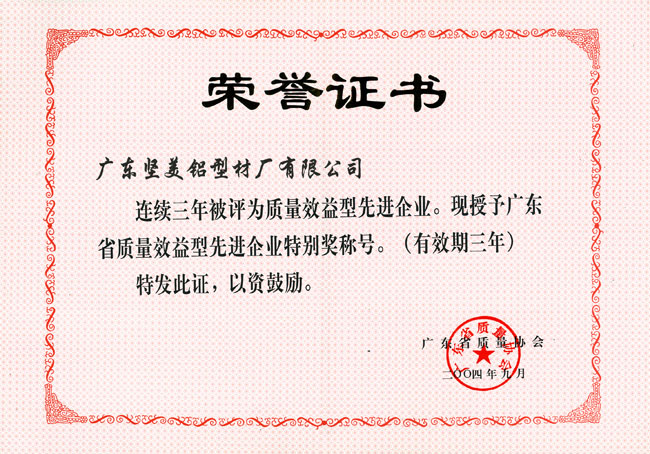 2004年連續3年被評為質量效益型企業