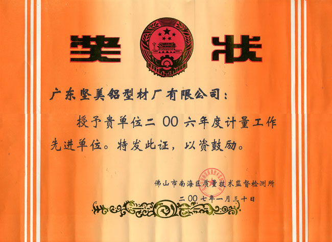 2006年度計量工作先進單位