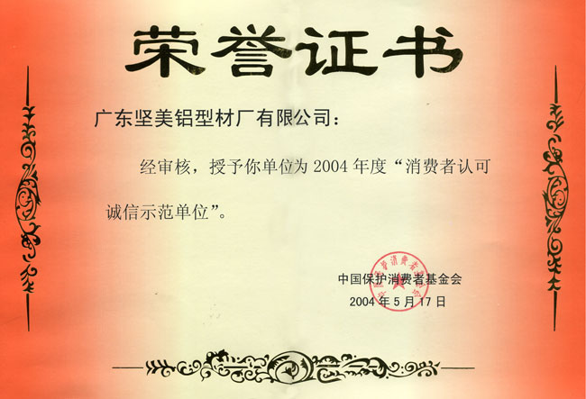 2004年度消費者認可誠信示范單位