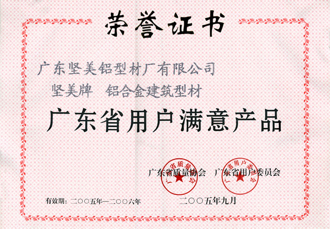 2005年廣東省用戶滿意產品