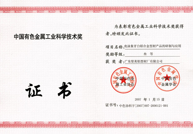 2007年中國有色金屬工業科學技術獎