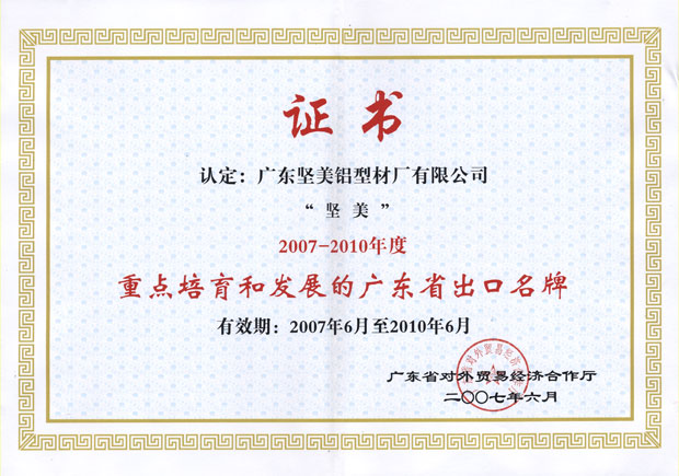 2007年重點培育和發展廣東省出口名牌