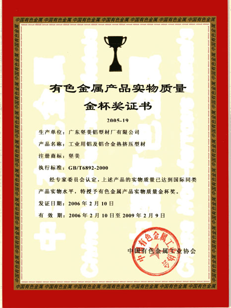 2006年有色金屬產品實物質量金杯獎
