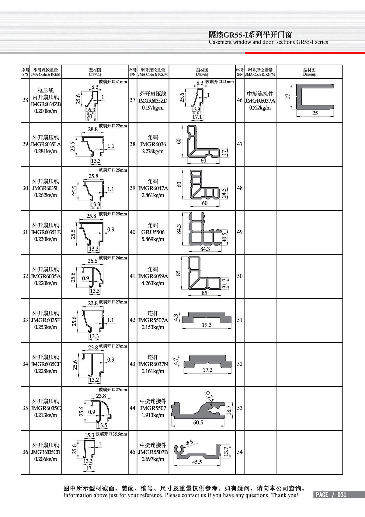 Position: Home - Product line - Thermal break - Insertion casement series - Casement window sections GR55-I series