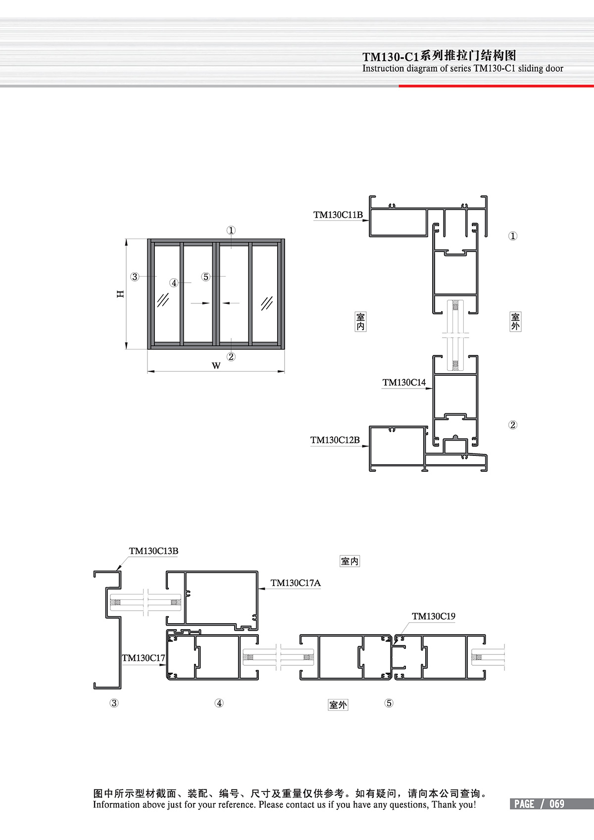 Position: Home - Product line - Ordinary doors and windows - Sliding door sections - Series TM130-C1 Sliding door