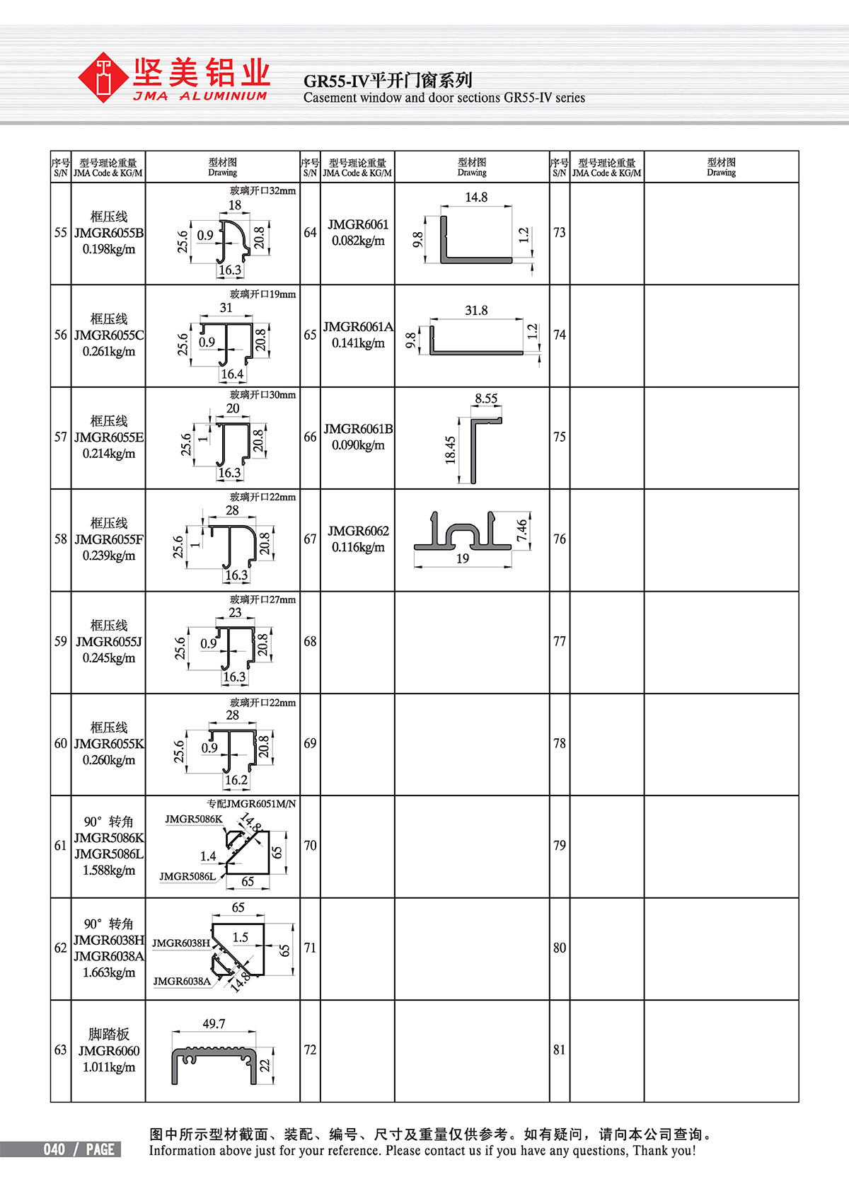 Inicio - Centro de productos - Aislamiento térmico - Insertion casement series - Casement window and door sections GR55-IV series