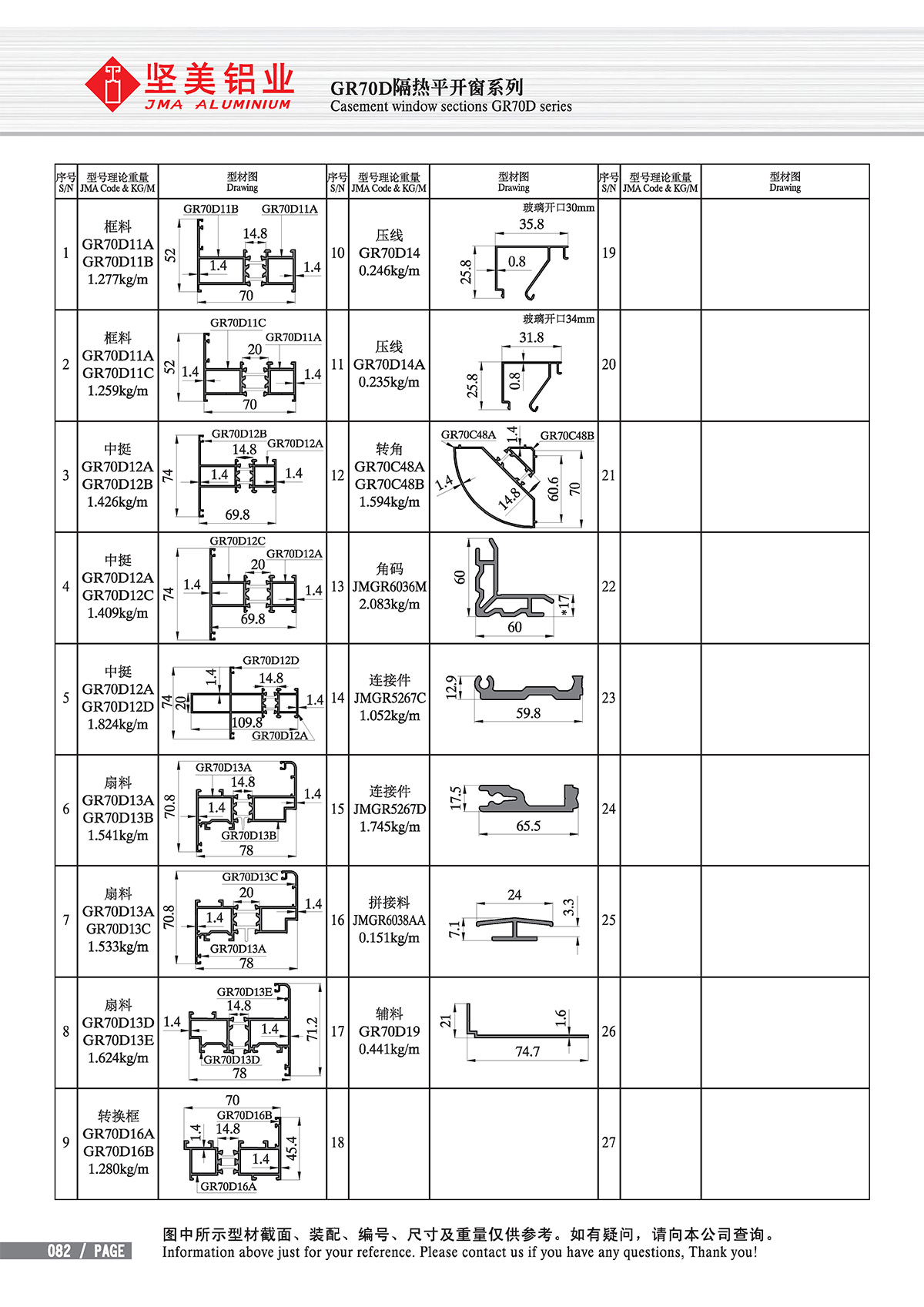 Casement window sections GR70D series