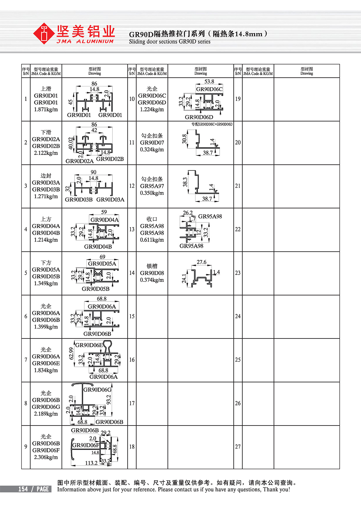 Inicio - Centro de productos - Aislamiento térmico - new GB standard Thermal-break - Sliding door sections GR90D/95 series