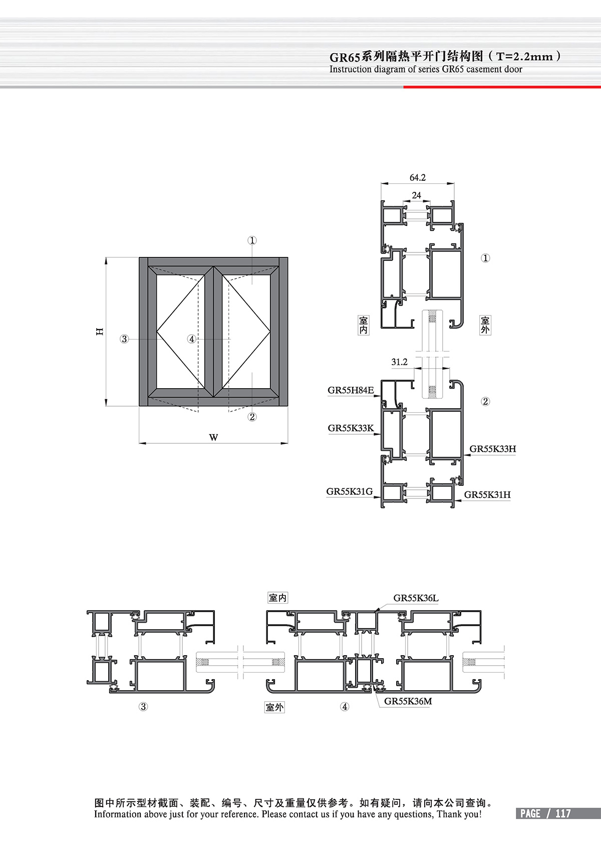 Inicio - Centro de productos - Aislamiento térmico - new GB standard Thermal-break - Casement door sections GR55/60/65 series