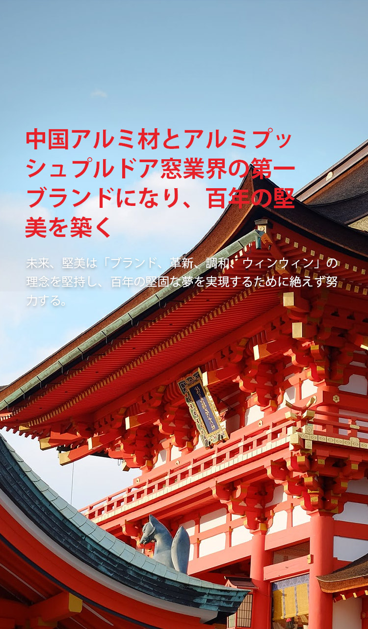 広東堅美アルミ型材工場(グループ)有限會社は1993年に設立され、アルミ合金建築型材、工業材とアルミ合金建具の研究、設計、生産と販売を一體に集めた業界トップ企業で、年間生産能力が60萬トン以上である。製品は建築、電子通信ハードウェア、建築テンプレート、機械製造、太陽電池パネル、交通輸送などの分野で広く使用されている。