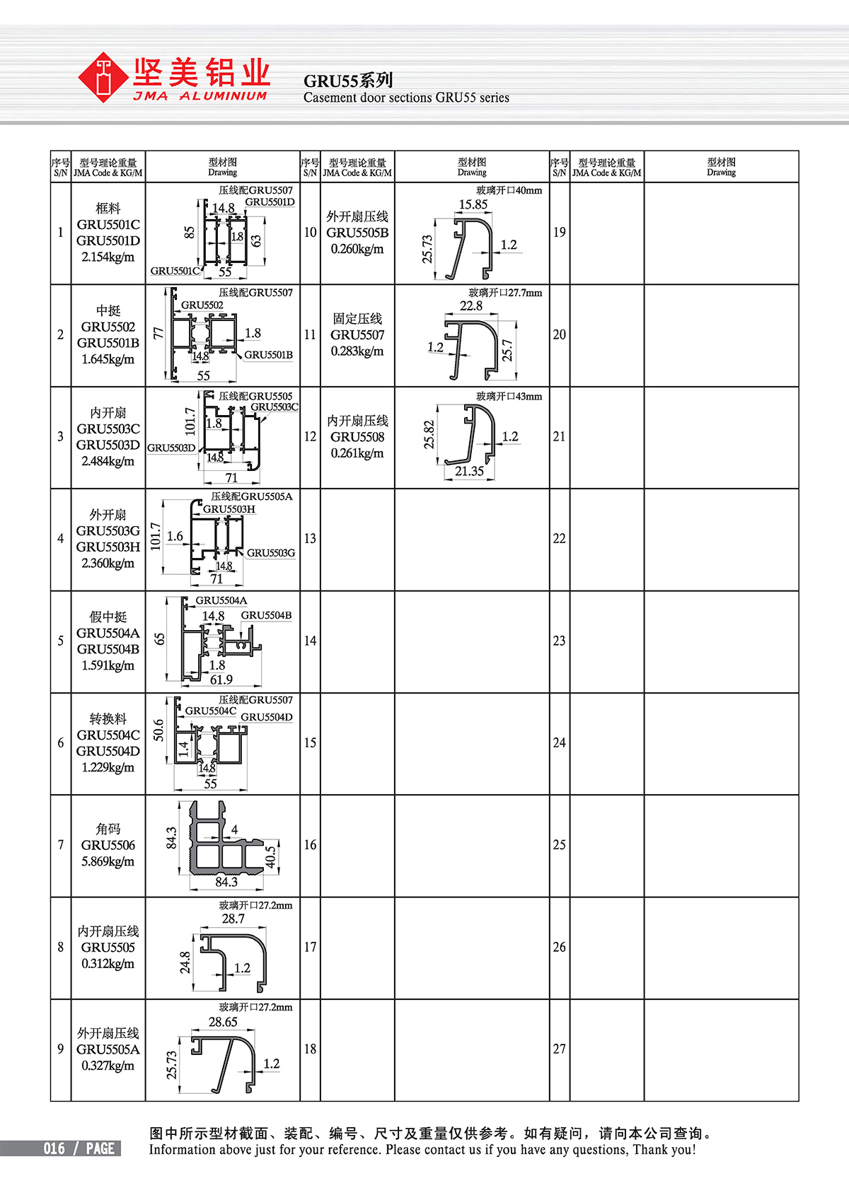 ホーム - 製品センター - 斷熱 - Insertion casement series - Casement door sections GRU55 series