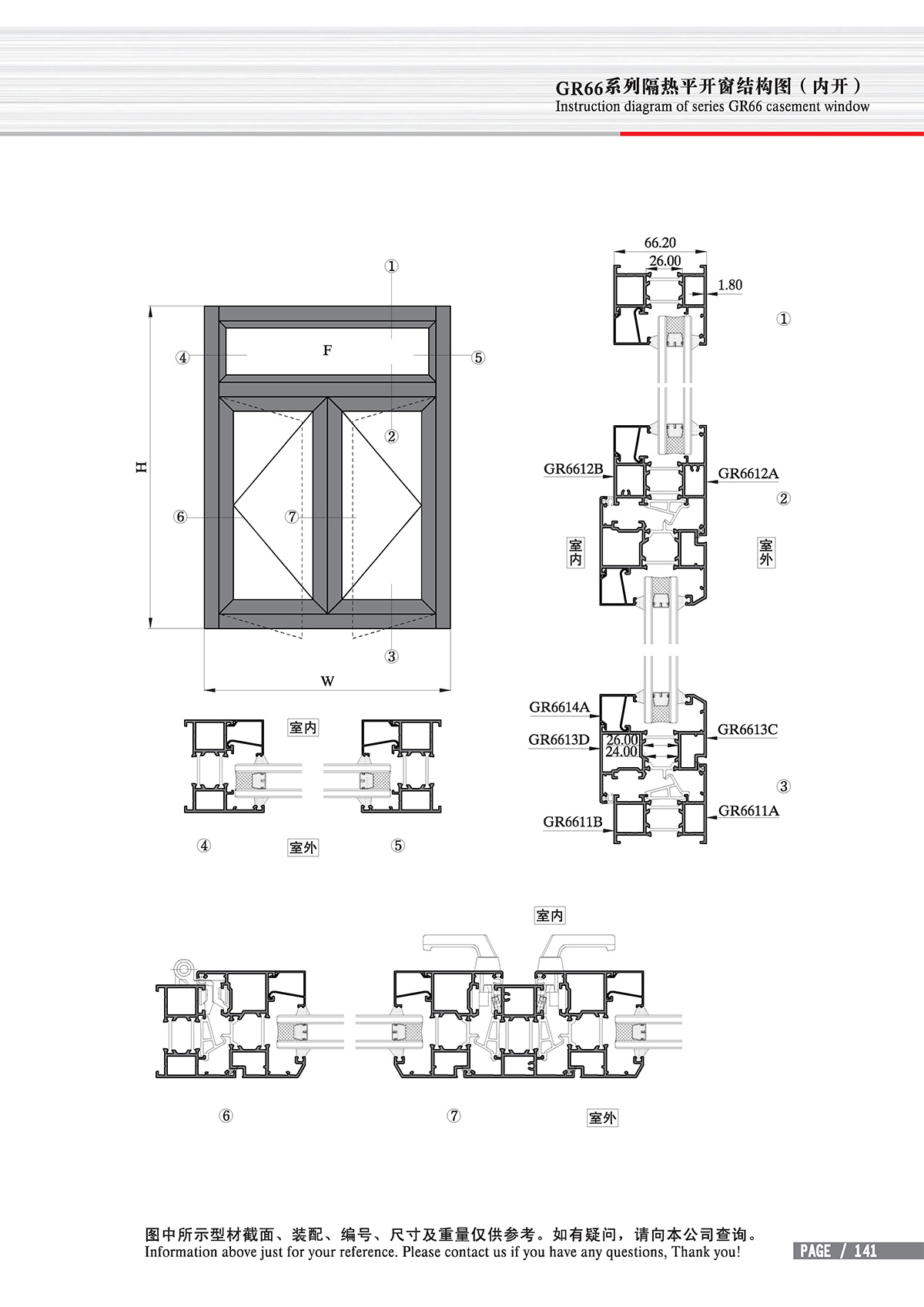 ホーム - 製品センター - 斷熱 - new GB standard Thermal-break - Casement window sections GR66 series