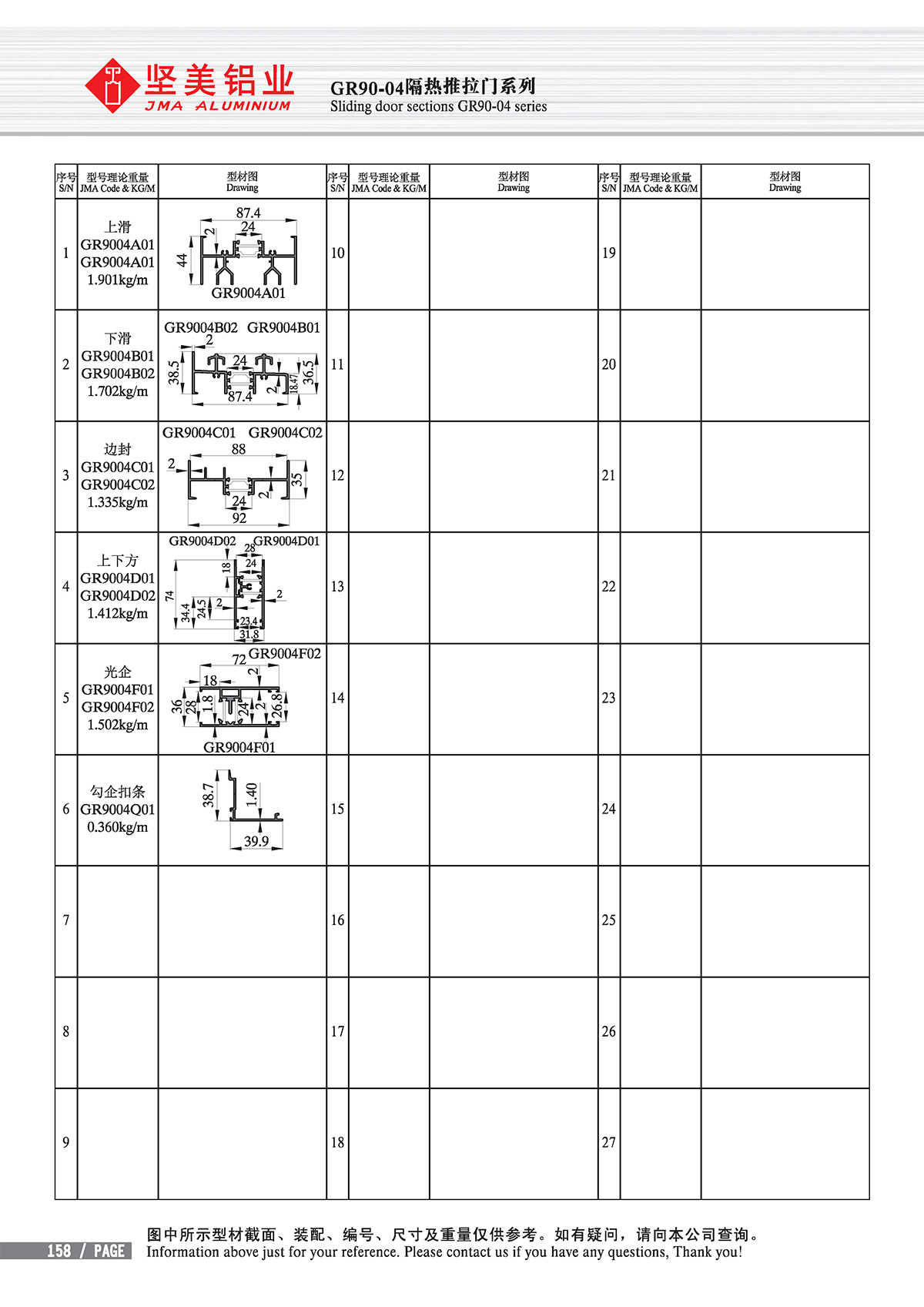 ホーム - 製品センター - 斷熱 - new GB standard Thermal-break - Sliding door sections GR90 series