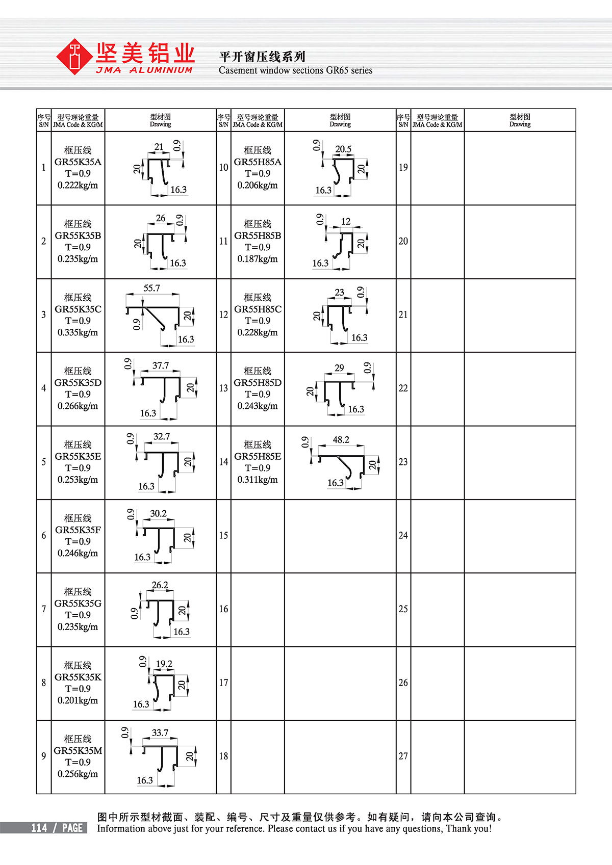ホーム - 製品センター - 斷熱 - new GB standard Thermal-break - Casement window sections GR55/60/65 series