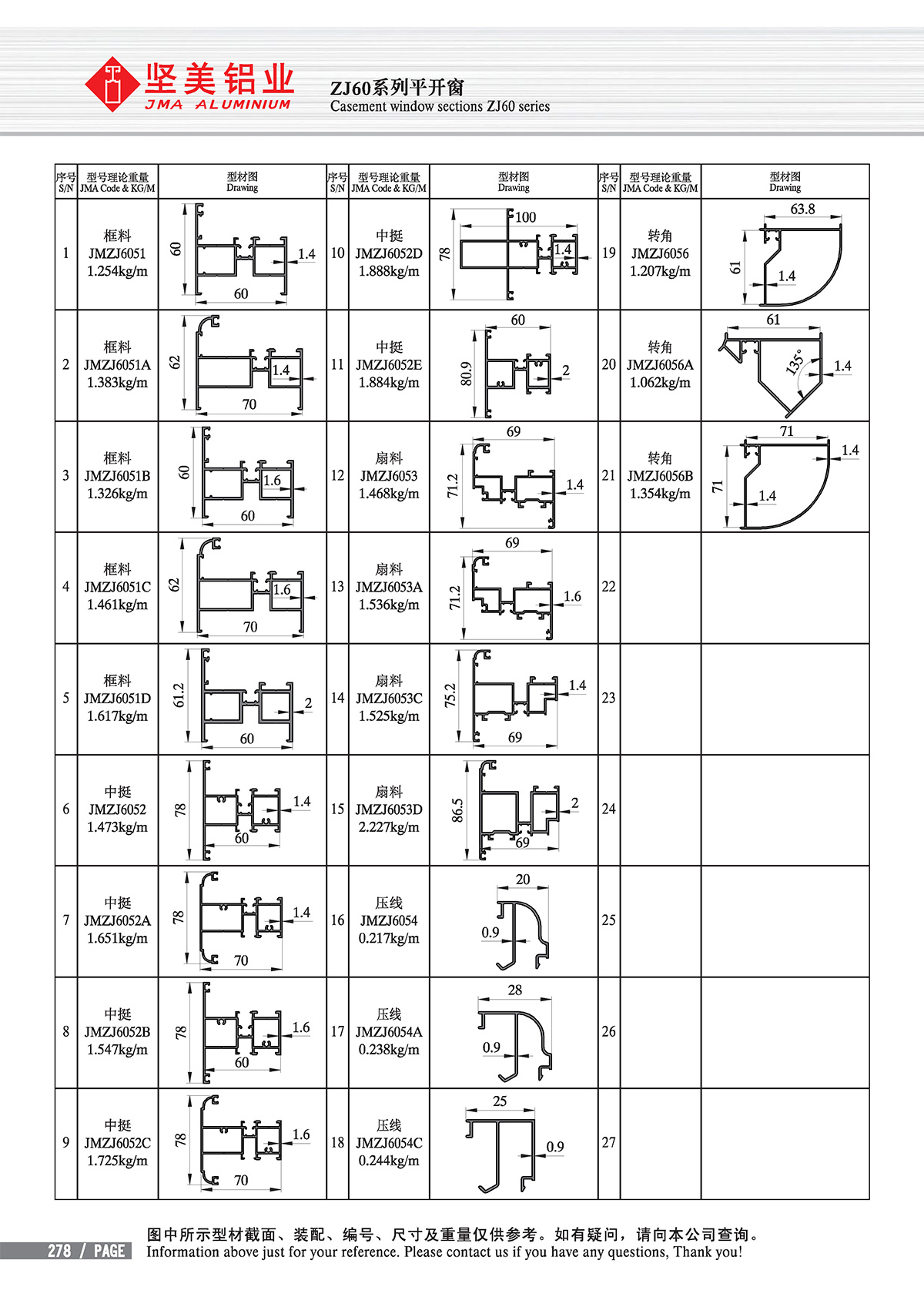 ホーム - 製品センター - 斷熱 - Fill-Debridge casement series - Casement window sections ZJ60 series