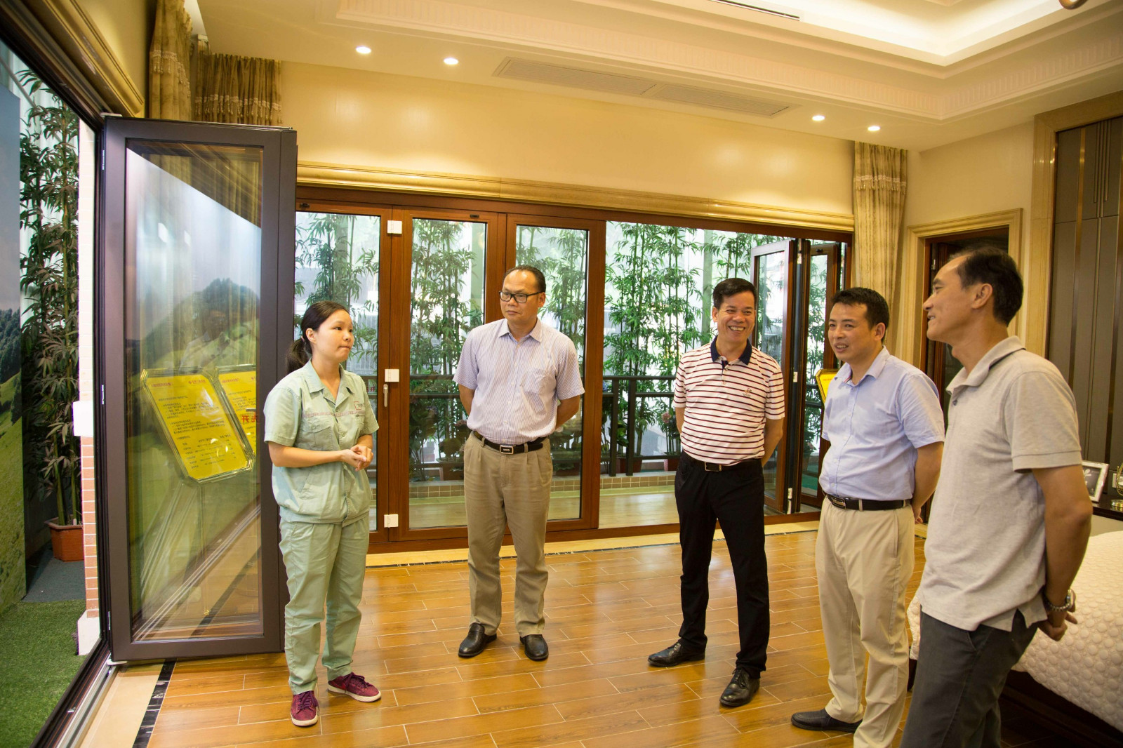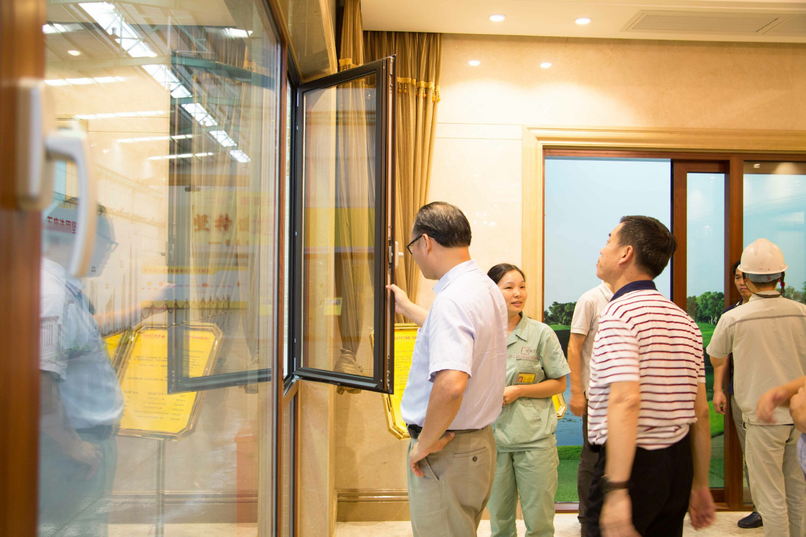 劉度量一行人在堅美分別到產品展示廳、生產車間、轉型創新展廳進行了參觀。在轉型創新展廳,劉度量副書記詳細詢問了堅美系統門窗的特點、優勢以及與普通門窗的區別,并對于堅美采用互聯網+定制的發展方式表示高度的贊賞。當來到“五性”體驗區,在模擬大風、寒冷、酷熱、大雨等環境下,系統門窗所展現的氣密性、水密性、保溫性等方面給劉度量一行人留下深刻的印象,令他們由衷的感嘆堅美系統門窗所帶來不一樣的門窗享受。