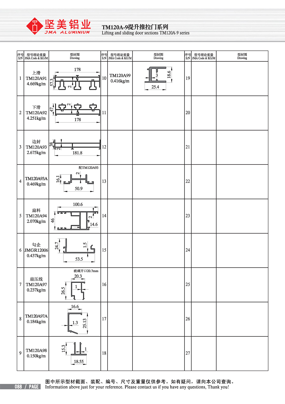 您現在的位置: 首頁 - 產品系列 - 普通門窗 - 提升推拉門/重型門系列 - TM120A-9系列提升推拉門