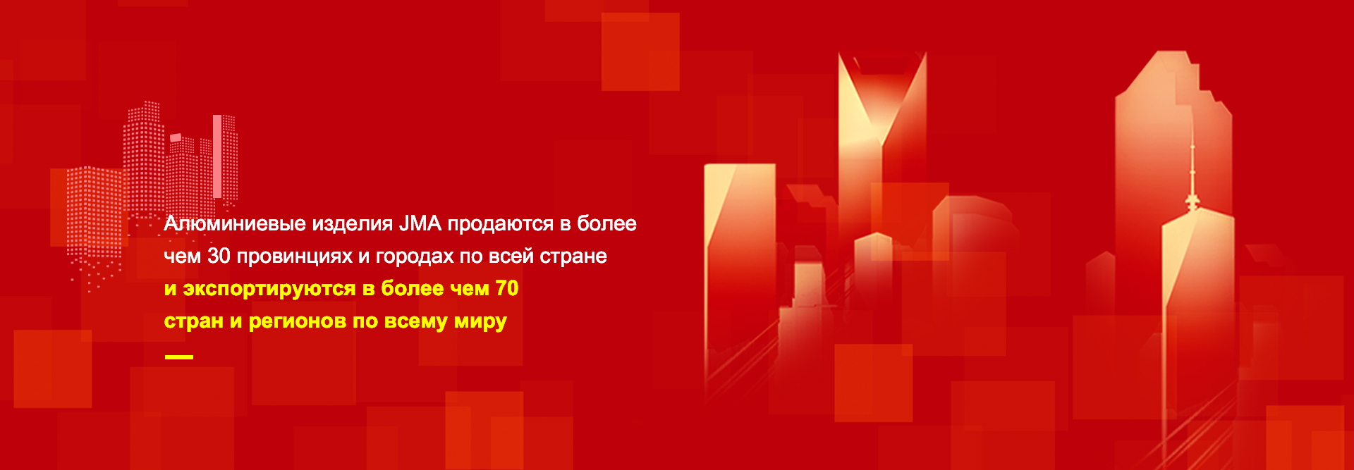 Благодаря преимуществам в отрасли качества, бренда, инновации и услуги, алюминиевые изделия JMA продаются в более чем 30 провинциях и городах по всей стране, и экспортируются в более чем 70 стран и регионов по всему миру. эти изделия используются в таких знаменитых крупных объектах и значимых зданиях в стране и за рубежом, такие как Дом народных собраний, новое здание Центральной телевизионной станции, Олимпийская деревня города Пекин, Гонконгский международный бизнес-центр, здание федерального правительства Калифорнии, почтовое здание города Токио Японии, здание города Дубай ОАЭ.