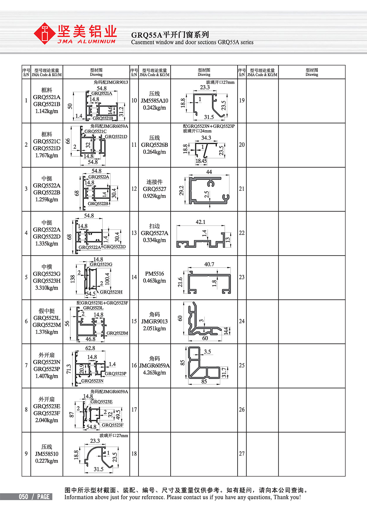 Casement window and door sections GRQ55A series