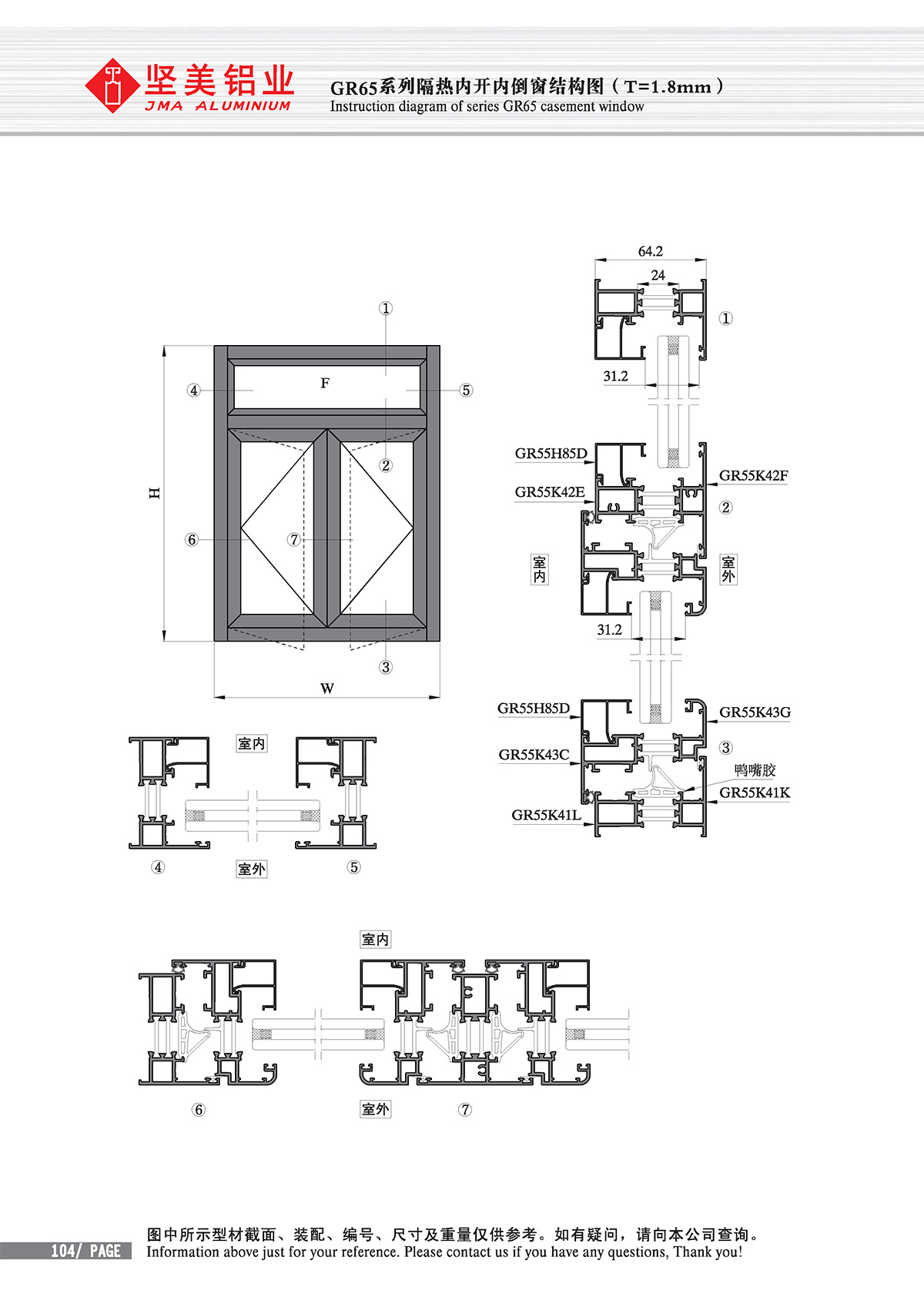 Главная - ПРОДУКЦИЯ - Теплоизоляция - new GB standard Thermal-break - Casement window sections GR55/60/65 series