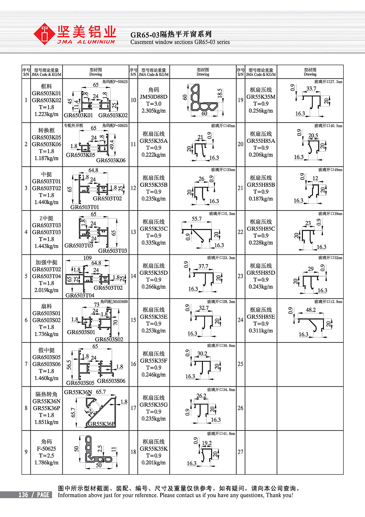 Главная - ПРОДУКЦИЯ - Теплоизоляция - new GB standard Thermal-break - Casement window and door sections GR65 series